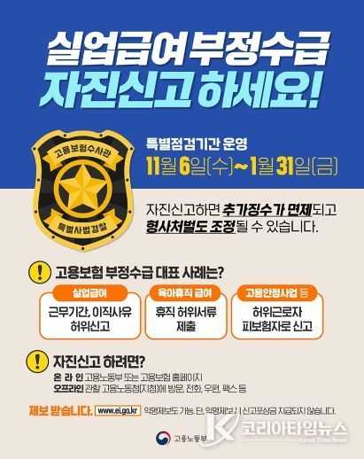 코리아타임뉴스 윤광희 기자 | 자진신고하면 추가징수가 면제되고 형사처벌도 조정될 수 있습니다.