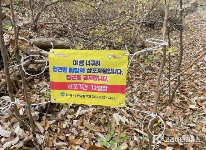 코리아타임뉴스 권충현 기자 | 김해시는 인수공통감염병인 광견병 발생을 예방하기 위해 (사)자연보호연맹김해시협의회(회장 임영택)와 11월 28일 야생동물 광견병 미끼예방약을 분성산 등 너구리 서식지역과 주요 출몰지역에 살포했다고 밝혔다.