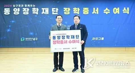 코리아타임뉴스 권충현 기자 | 라인그룹의 동양장학재단이 지역 인재 육성을 위해 광주 남구청에 2년 연속으로 통 큰 장학금을 기부했다.