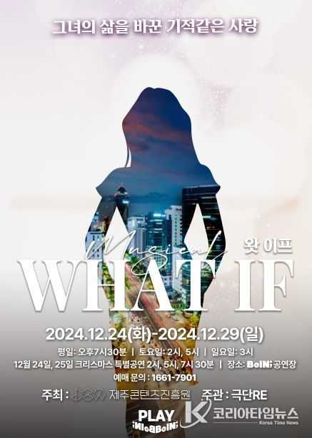 코리아타임뉴스 권충현 기자 | (재)제주콘텐츠진흥원에서 크리스마스와 연말을 맞아 가족, 연인, 친구들이 함께 즐길 수 있는 판타지 로맨스 뮤지컬 WHAT IF(왓 이프)를 BeIN:(비인) 공연장에서 선보인다.