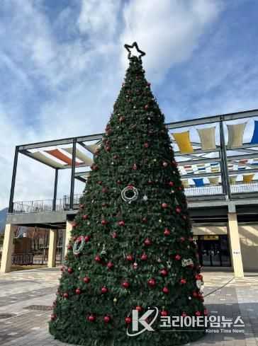 곡성섬진강기차마을 후문 광장에 10미터 규모의 초대형 트리가 등장했다.