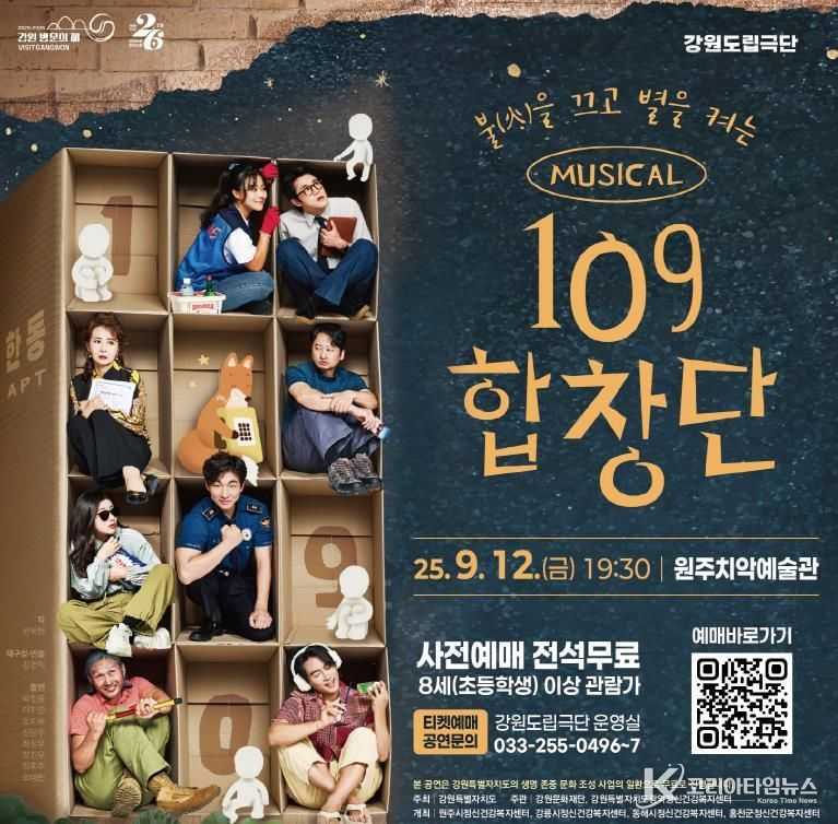 코리아타임뉴스 한장선 객원기자 | 원주시정신건강복지센터 부설 자살예방센터는 오는 9월 12일 치악예술관에서 자살예방의 달을 기념해 생명의 소중함을 전하는 뮤지컬 ‘109합창단’을 개최한다.