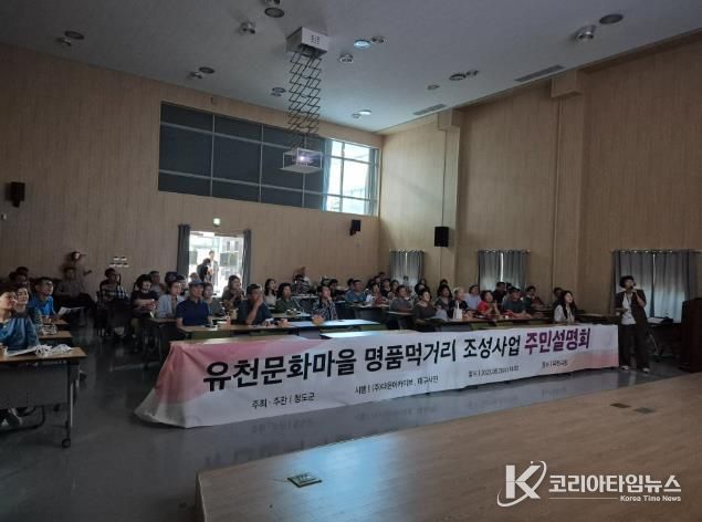 코리아타임뉴스 경북취재본부 | 청도군은 8월 20일 유천극장에서 유호리, 내호리 주민 70여명이 참석한 가운데 유천문화마을 일대에서 추진되는 『유천문화마을 명품먹거리 조성사업』의 주민 설명회를 개최했다.