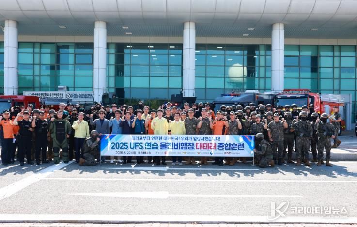 코리아타임뉴스 경북취재본부 | 울진군은 지난 8월 22일 2025년 UFS 연습의 일환으로 기성면 울진비행장에서 대규모 대테러 종합훈련을 실시했다.
