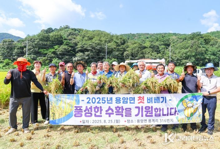 코리아타임뉴스 경북취재본부 | 올해 성주군 용암면의 첫 벼베기는 8월 25일 오전 10시 선송리 조용수(65)씨의 논에서 실시되어 풍년농사의 결실을 알렸다.