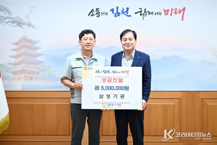 코리아타임뉴스 경북취재본부 | 김천복지재단은 지난 25일, 삼성기공으로부터 성금 500만 원을 전달받았다고 밝혔다.