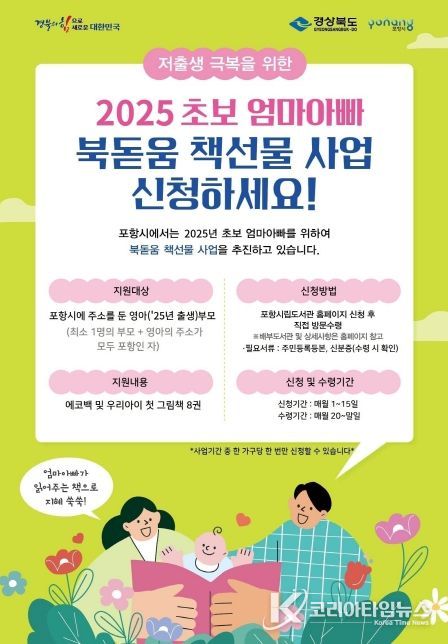 코리아타임뉴스 경북취재본부 | 포항시립도서관이 상반기에 이어 하반기에도 2025년 출생 영아 가정을 위한 ‘초보엄마아빠 북돋움 책선물 사업’을 운영한다.