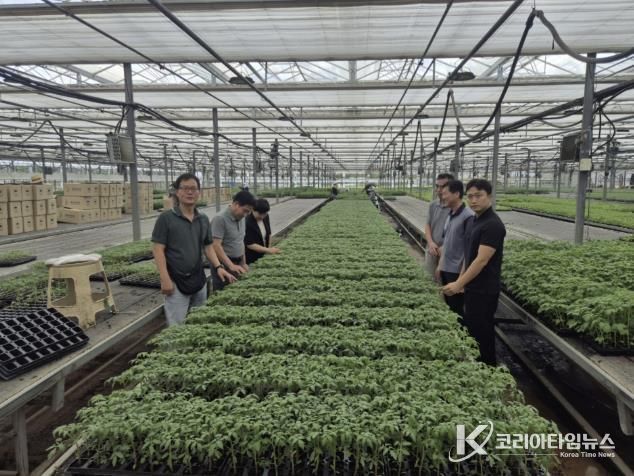 이번 육묘장 견학은 금년말 봉성면 창평리에 준공되는 봉화 임대형 스마트팜단지 B동에 식재되는 토마토 모종의 원활한 수급과 유망품종 선택을 위한 정보 수집을 위해 이뤄졌다.