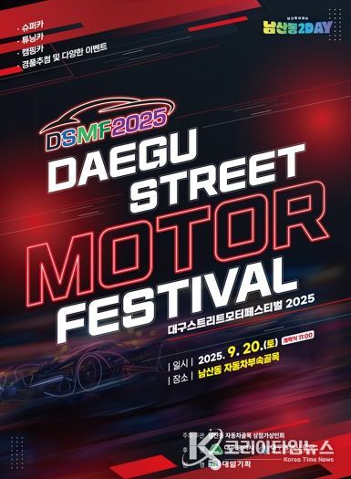 코리아타임뉴스 대구취재본부 | 대구 중구는 오는 9월 20일 오전 10시부터 오후 6시까지 남산동 자동차부속골목 일원에서 2025 대구스트리트모터페스티벌을 개최한다.
