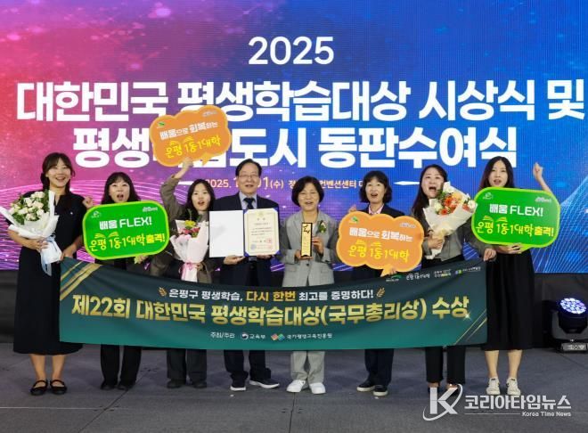 코리아타임뉴스 오영주 기자 | 서울 은평구는 지난 1일 열린 ‘제22회 대한민국 평생학습대상 시상식’에서 사업 부문 대상인 국무총리상을 받았다고 밝혔다.