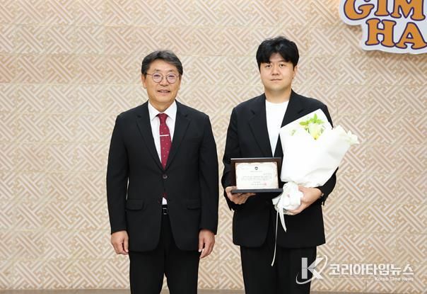 코리아타임뉴스 오영주 기자 | 김해시는 2일 오전 김해시청 대회의실에서 친환경 생활가전 제조업체인 ㈜비앤테크 방용휘 대표에게 ‘10월 자랑스러운 김해 CEO상’을 수여했다고 밝혔다.