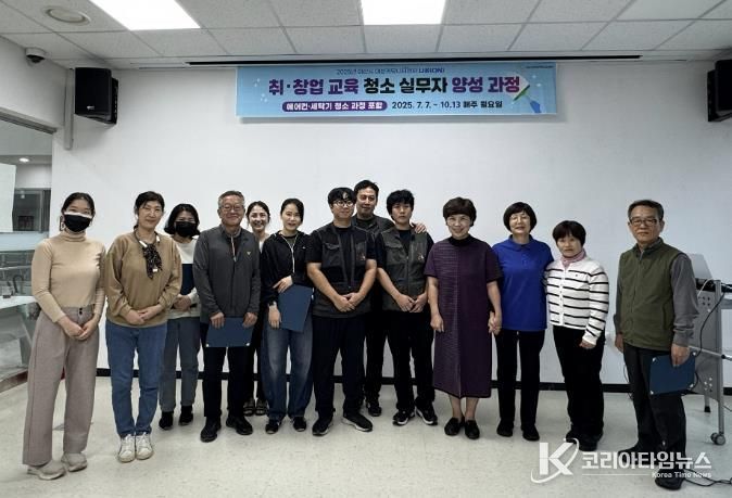 이번 교육은 7월 7일부터 3개월간 진행됐으며, 청소 직무 이론과 실습은 물론 가전 세척 기술까지 익혀 수료생들이 취업 현장에서 전문성과 경쟁력을 갖추도록 했다.