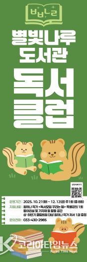 홍천군은 별빛나루도서관에서 10월 21일부터 12월 11일까지 ‘2025년 하반기 독서클럽’을 운영한다고 밝혔다.