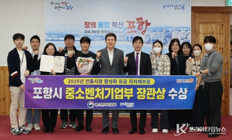 코리아타임뉴스 경북취재본부 | 포항시가 중소벤처기업부 주관 ‘2025년도 전통시장 활성화 유공 포상’에서 우수기관으로 선정돼 중소벤처기업부 장관 표창을 수상했다.
