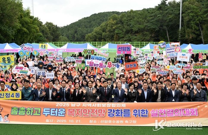 코리아타임뉴스 울산취재본부 | 울산 남구는 21일 선암호수공원에서 ‘2025년 남구 지역사회보장협의체 실천결의대회’를 열고 복지 사각지대 없는 촘촘한 지역복지 실현을 위한 새로운 결의를 다졌다.