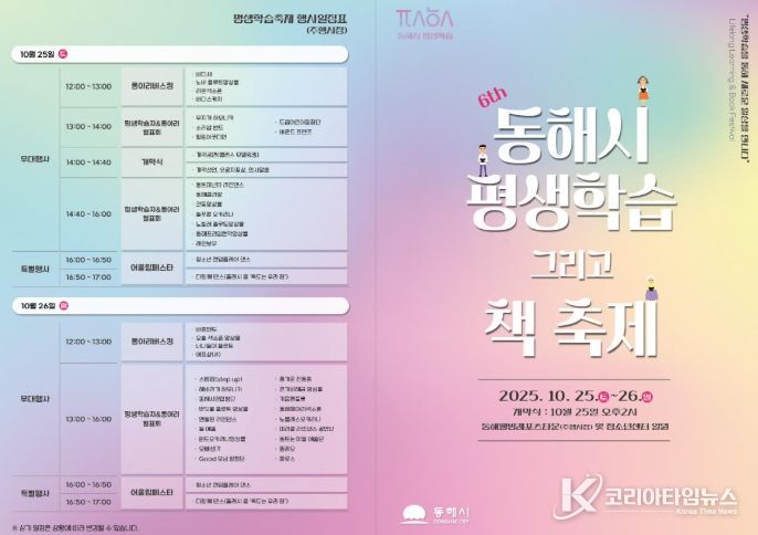 코리아타임뉴스 이아름 기자 | 동해시는 오는 10월 25일부터 26일 이틀간 열리는 '제16회 동해시 평생학습 그리고 책 축제'에서 특별한 시민 참여형 이벤트가 펼쳐진다.