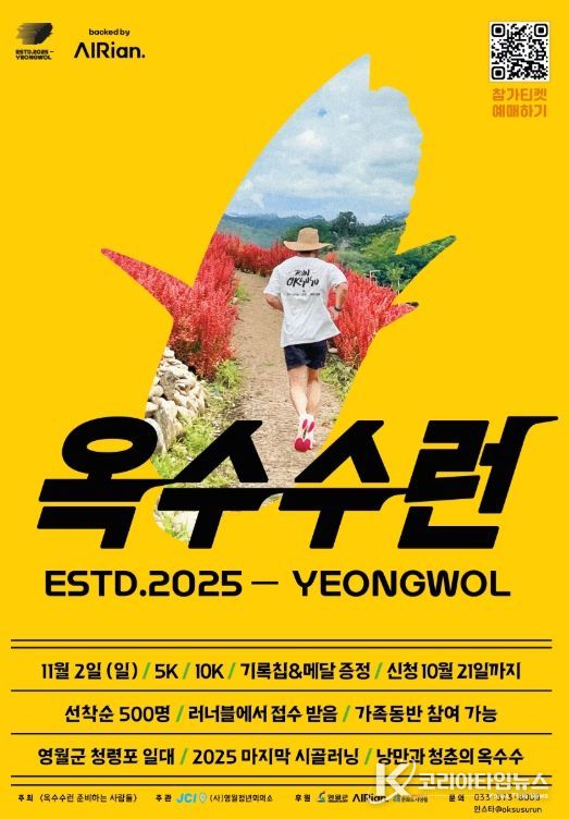 코리아타임뉴스 이아름 기자 | 가을의 낭만과 청춘의 에너지를 함께 느낄 수 있는 ‘2025 옥수수(OKSUSURUN)’이 오는 11월 2일, 강원특별자치도 영월군 청령포 일대에서 열린다.