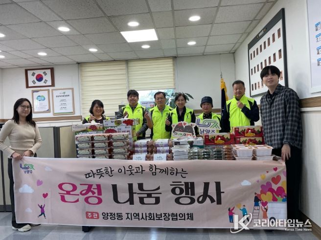 코리아타임뉴스 경기취재본부 | 남양주시는 28일 양정동 지역사회보장협의체(위원장 변종세)가 관내 소외계층 47가구를 대상으로 다양한 음식과 물품을 전달했다고 밝혔다.