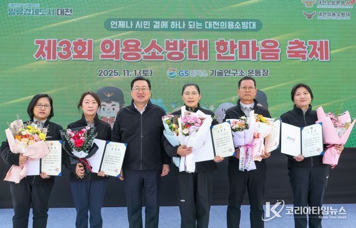 코리아타임뉴스 김태훈 기자 | 대전소방본부는 1일 유성구 문지동 소재 GS칼텍스 기술연구소 운동장에서 '제3회 대전의용소방대 한마음 축제'를 성황리에 개최했다.