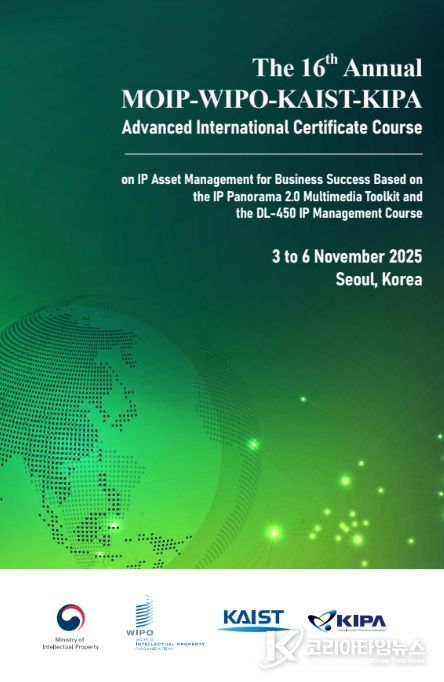 코리아타임뉴스 해외팀 | 지식재산처는 세계지식재산기구(WIPO) 및 한국발명진흥회(KIPA)와 공동으로 11월 3일~ 6일까지 한국지식재산센터(서울 강남구)에서 '국제 지식재산 전문가 인증과정(AICC)'을 개최한다.
