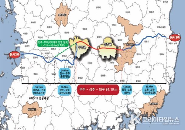 코리아타임뉴스 윤경수 기자 | ‘무주~성주~대구 고속도로 건설사업’이 ‘예비타당성조사 대상 사업’으로 최종 선정됐다.