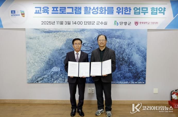 코리아타임뉴스 박찬식 기자 | 충북 단양군이 유네스코 세계지질공원의 교육 프로그램을 한 단계 도약시키기 위해 충북대학교 인문대학과 손잡고 융합형 교육사업을 본격화한다.