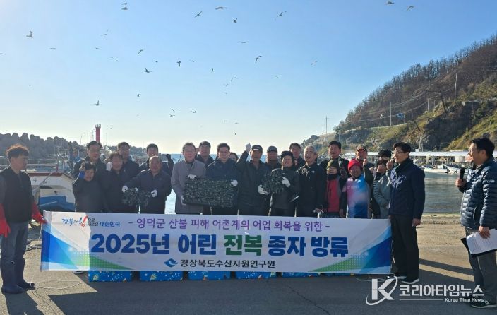 코리아타임뉴스 노승선 기자 | 영덕군은 산불 피해를 본 어촌계의 소득을 증대하고 지역 연안 생태계 복원에 이바지하기 위해 지난 19일 경상북도 수산자원연구원과 함께 어린 전복 15만 마리를 산불 피해 지역인 노물리, 석리, 경정1리, 경정2리, 경정3리 마을 어장에 방류했다.