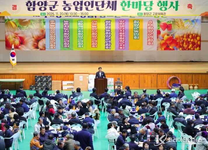 코리아타임뉴스 오영주 기자 | 함양군은 11월 20일 고운체육관에서 ‘2025년 함양군 농업인단체 한마당 행사’를 성황리에 개최했다고 밝혔다.