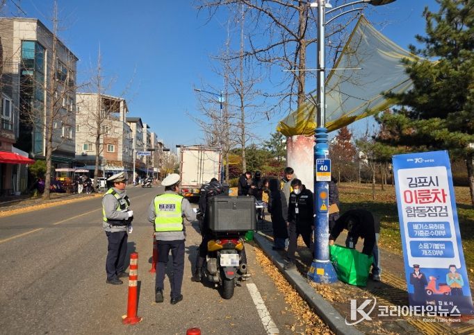 코리아타임뉴스 기동취재팀 | 김포시는 12월 19일 오후 2시부터 4까지 장기동 먹자골목 인근에서 이륜자동차를 대상으로 유관기관 합동점검을 실시했다고 밝혔다. 이번 점검은 코로나19 이후 급증한 배달문화 확산으로 증가한 이륜자동차 소음 민원에 적극적인 대응을 하고자 진행됐다.