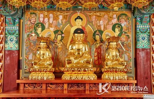 - 삼척 신흥사 대웅전에 주불로 봉안되어 있는 석조석가여래삼존좌상은 본존에 석가여래불, 좌우협시는 보살상으로 구성되어 있다.