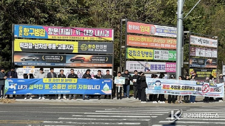 코리아타임뉴스 경북취재본부 | 포항시는 21일 장성동 두산위브사거리 일원에서 ‘시민과 함께하는 물 사랑’ 캠페인을 진행하며 생활 속 물 절약 실천과 불법 오물분쇄기 사용 근절을 홍보했다.