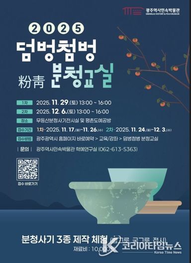 코리아타임뉴스 노승선 기자 | 광주광역시 역사민속박물관은 ‘2025 덤벙첨벙 분청교실’을 11월29일과 12월6일 두 차례 운영한다.