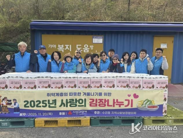 조보훈 수리동 지역사회보장협의체 위원장은 “김장김치와 생신선물이 추운 겨울을 앞둔 이웃들에게 작은 힘이 되길 바란다”며 “복지 사각지대 해소와 나눔문화 확산을 위해 지속적으로 노력하겠다”고 말했다.