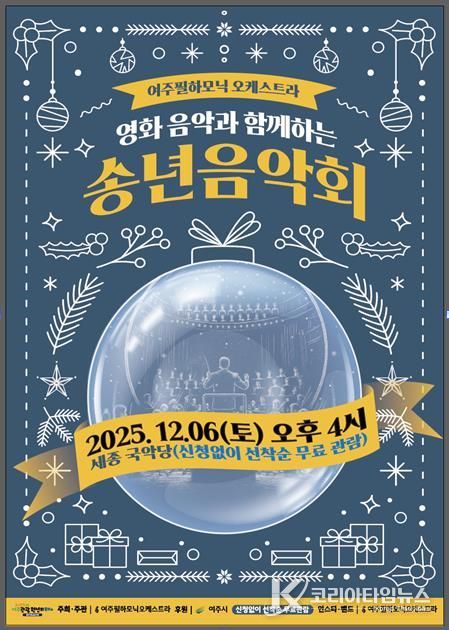 코리아타임뉴스 문화팀 | 여주 필하모닉 오케스트라는 오는 12월 6일 오후 4시, 세종국악당에서 '영화 음악과 함께하는 2025 송년음악회'라는 주제로, 연말을 맞아 여주시민과 함께 영화 속 명장면을 음악으로 되살리는 특별한 무대를 준비한다.