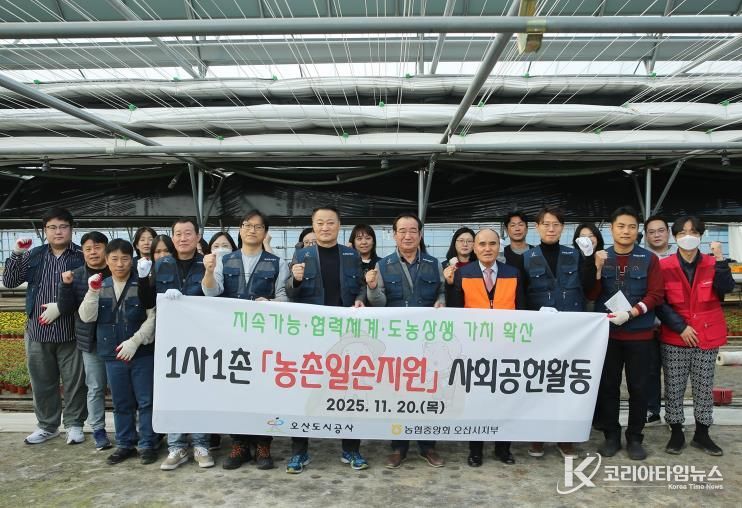 코리아타임뉴스 윤광희 기자 | 오산도시공사는 지난 20일 NH농협중앙회 오산시지부, 오산농협과 함께 도농상생을 위한 ‘1사1촌 농촌 일손지원 봉사활동’을 성공적으로 마무리했다고 밝혔다.