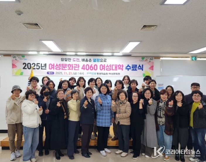 코리아타임뉴스 경북취재본부 | 포항시평생학습원 여성문화관은 지난 21일 중장년 여성의 자기계발과 사회활동 참여 확대를 목표로 운영한 ‘2025년 4060 여성대학’의 수료식을 개최했다.