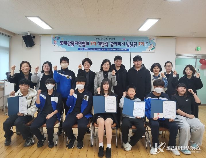 코리아타임뉴스 박찬식 기자 | 증평군청소년상담복지센터는 24일 ‘2025년 증평군 또래상담자연합회 7기 해단식’을 개최하고, 올 한 해 또래상담자 활동을 성공적으로 마무리했다고 밝혔다.
