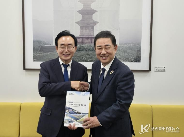 코리아타임뉴스 전남취재본부 | 윤병태 나주시장이 2026년도 국비 확보를 위해 김병기 더불어민주당 원내대표와 단독 면담을 진행하고 한국에너지공과대학교 지원, 에너지 전문과학관 건립, 직류산업 혁신특구 지원 등 7대 핵심사업의 국가적 필요성을 설명하며 국회 차원의 협력을 요청했다.