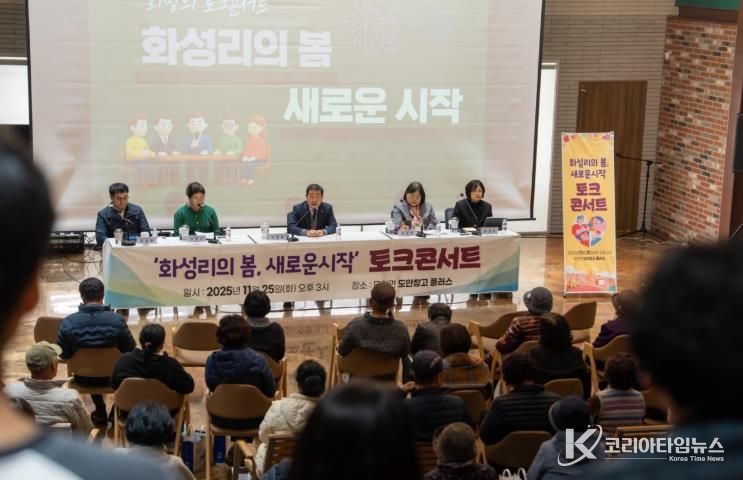 코리아타임뉴스 박찬식 기자 | 충북 증평군이 25일 도안창고플러스에서 ‘화성리의 봄, 새로운 시작’ 토크콘서트를 열고, 화성리지구의 ‘농촌공간정비사업’선정 과정과 향후 재생 방향을 주민들과 공유했다.