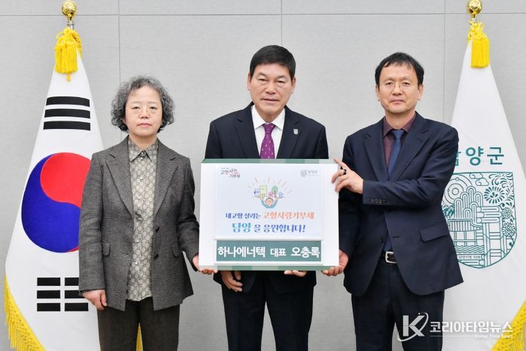 코리아타임뉴스 전남취재본부 | 담양군은 지난 24일 ㈜하나에너택 오충록 대표가 군을 방문해 고향사랑기부금 300만 원을 기탁했다고 밝혔다.