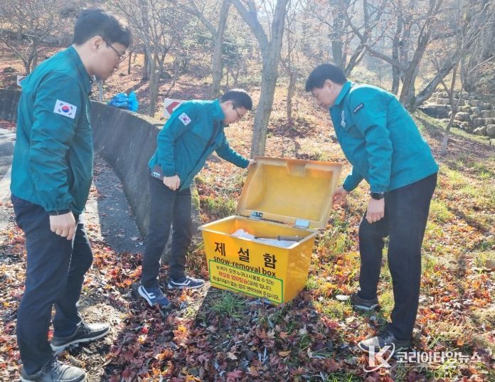 특히, 상습 결빙 지역인 오도재와 원통재의 염수분사장치 및 통제 시설이 정상 작동하는지 점검했으며, 제설 차량과 살포기 등 장비의 가동 상태도 확인했다. 또한, 염화칼슘과 모래 등 제설 자재의 충분한 비축 여부도 점검했다.