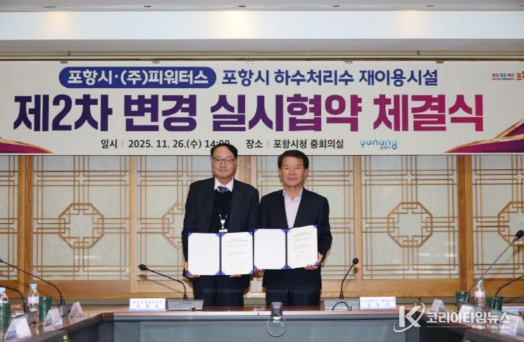 코리아타임뉴스 경북취재본부 | 포항시는 26일 하수처리수 재이용시설 민간투자사업의 안정적 운영 기반을 강화하기 위한 제2차 변경 실시협약 체결을 성공적으로 마무리했다.