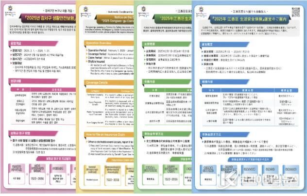 코리아타임뉴스 윤광희 기자 | 서울 강서구는 ‘생활안전보험’ 안내문을 한국어, 영어, 중국어, 일본어 4개 국어로 제작했다고 밝혔다.