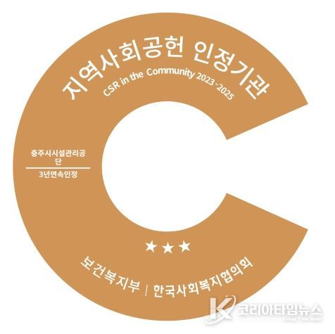 코리아타임뉴스 박찬식 기자 | 충주시시설관리공단은 보건복지부와 한국사회복지협의회가 주관하는 ‘2025 지역사회공헌 인정제’에서 A등급을 달성하면서 3년 연속 지역사회공헌 인정기업으로 선정됐다. 지역사회공헌 인정제는 지역사회 문제 해결과 민관 협력, 취약계층 지원 등 공공기관의 사회적 기여도를 종합적으로 평가해 인증을 부여하는 제도로, 공단은 올해 다양한 사회공헌 프로그램을 통해 실질적인 사회적 가치를 창출한 점을 인정받았다.