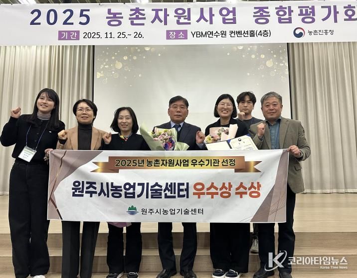 코리아타임뉴스 이아름 기자 | 원주시농업기술센터는 지난 25일 열린 농촌진흥청 주관 ‘2025년 농촌자원사업 성과확산 경진대회’에서 우수상을 수상했다.