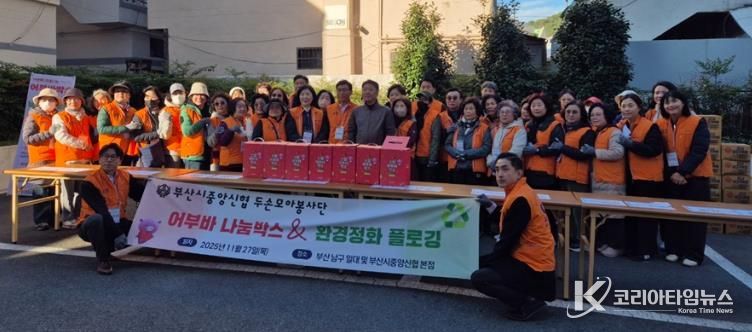 코리아타임뉴스 부산취재본부 | 부산시중앙신협 두손모아봉사단은 11월 27일 용호1·3동에 어부바 나눔박스 등 생필품을 후원했다.