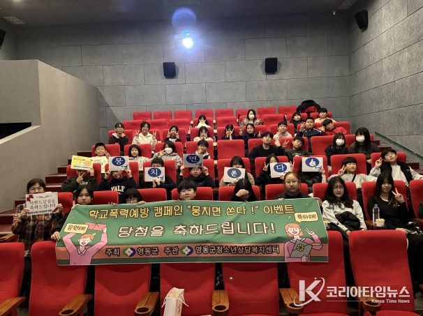 코리아타임뉴스 박찬식 기자 | 충북 영동군청소년상담복지센터(센터장 신춘옥)는 청소년과 학부모를 대상으로 SNS를 활용한 온라인 학교폭력예방 캠페인 ‘뭉치면 쏜다!’ 이벤트를 6년째 이어오며 큰 호응을 얻고 있다.