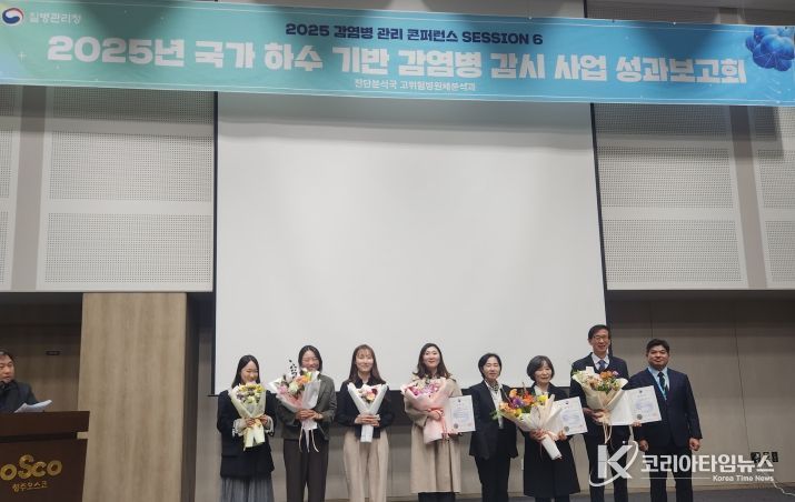 코리아타임뉴스 의료보건팀 | 대전보건환경연구원은 28일 청주 오스코에서 열린 ‘2025년도 감염병관리 콘퍼런스’에서 하수기반 감염병 감시 우수기관으로 선정되어 질병관리청장 기관 표창을 받았다.
