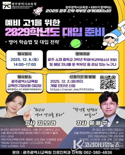 아카데미 참여를 희망하는 학생과 학부모는 오는 2일까지 광주진로진학지원센터 누리집을 통해 신청하면 된다. 당일 현장 접수도 가능하다. 특강은 행사가 끝난 후 EBSi 홈페이지에 탑재된다.