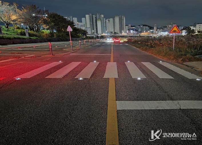 코리아타임뉴스 충북취재본부 | 청주시는 무심천 횡단보도와 산책로 우안(오른쪽) 태양광 도로표지병 2천500여개를 추가로 설치하는 사업을 완료했다고 1일 밝혔다.